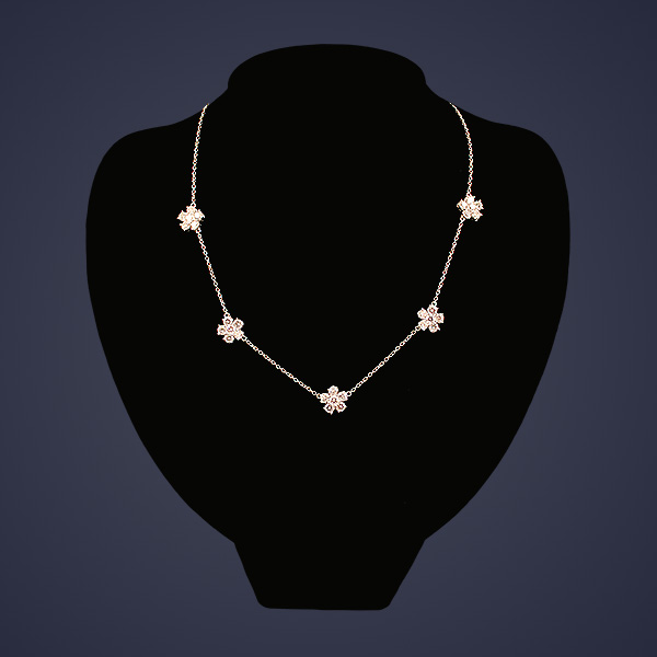 16” long platinum diamond flower necklace 4.50 carats
