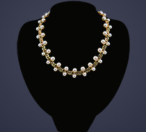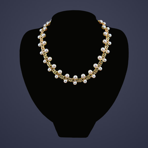16” long Marine B 18K yellow gold and pearl necklace