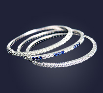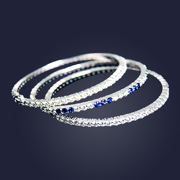 Set of three diamond bracelets, one alternating diamond and sapphire