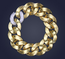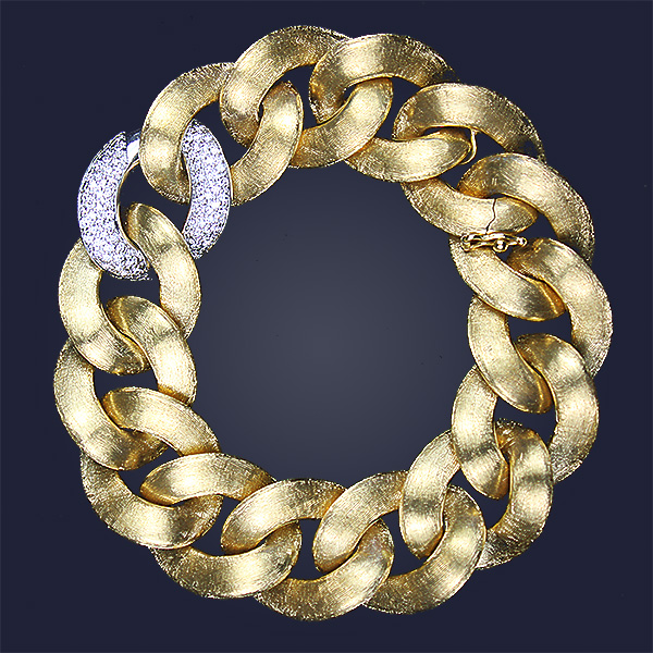 7” long 18K yellow gold Italian interlocking link bracelet with one pave diamond line