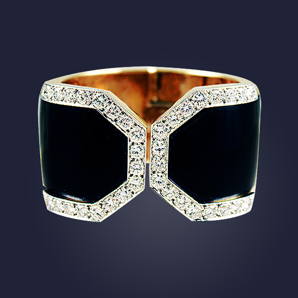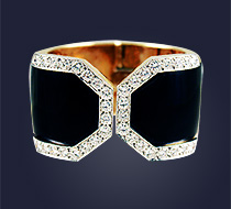 David Webb 18K yellow gold black enamel and diamond hinged cuff