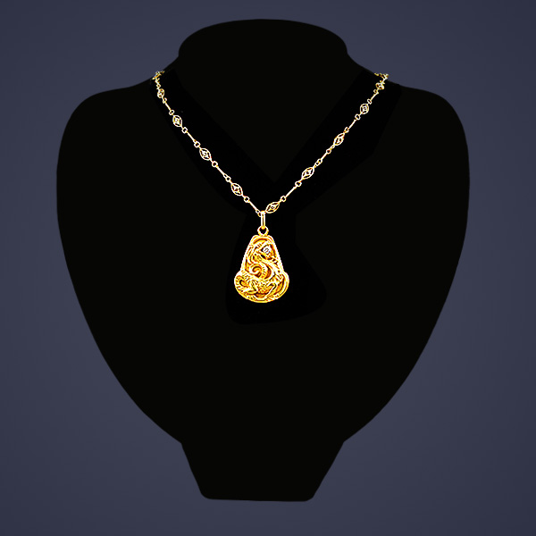 16” long Victorian fierce dragon locket on 18K yellow gold chain